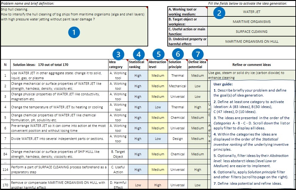 - 30…50 implementable solution ideas for a given engineering problem