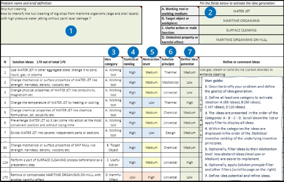 - 170 inventive principles known from the Theory of Inventive problem Solving (TRIZ)